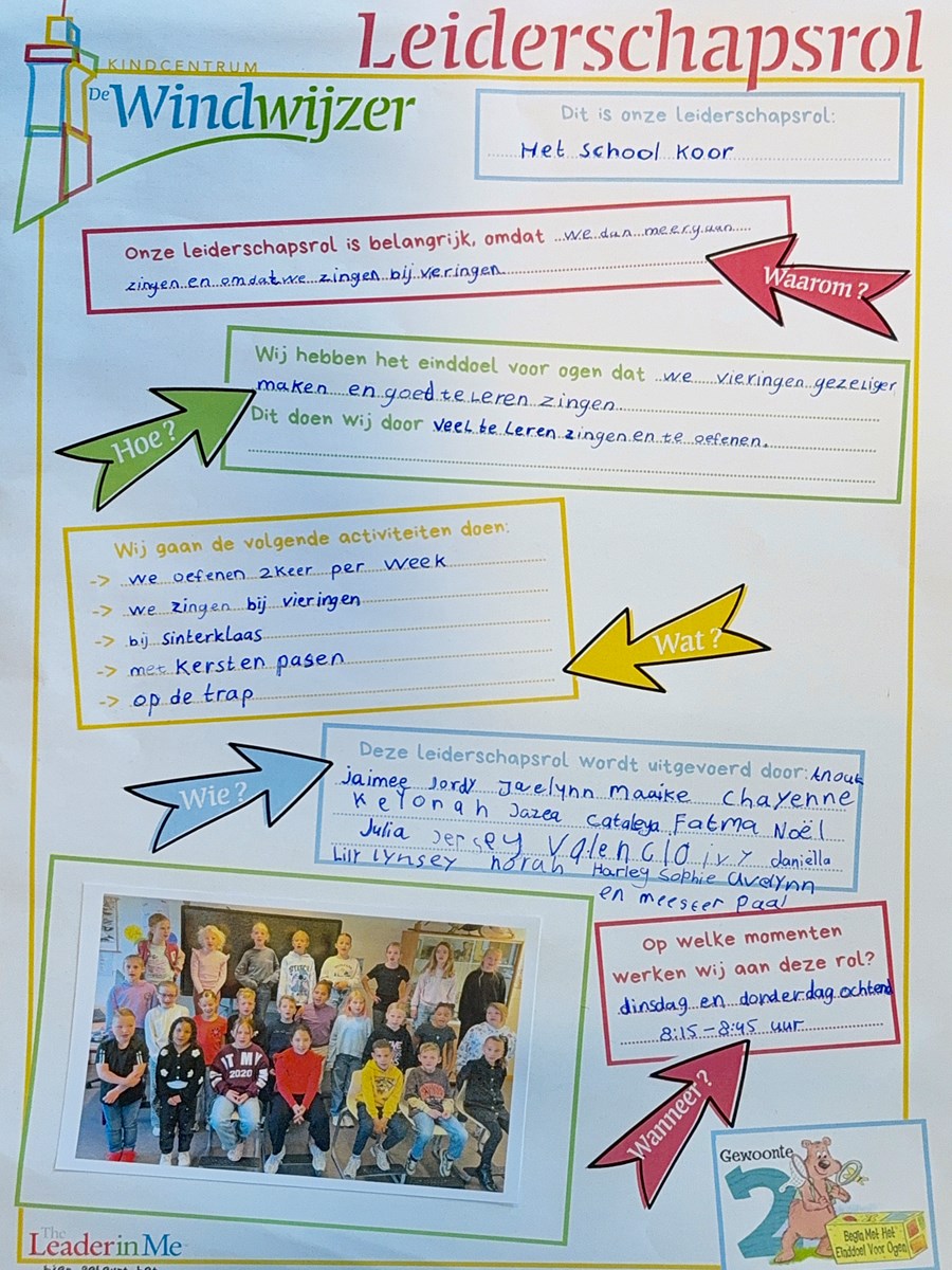 Het schoolkoor heeft het plan gemaakt met wat zij willen bereiken dit schooljaar: ‘We vinden het koor belangrijk, omdat we dan meer gaan zingen en omdat we zingen bij vieringen. We hebben als einddoel voor ogen dat we vieringen gezelliger maken en goed leren zingen.’